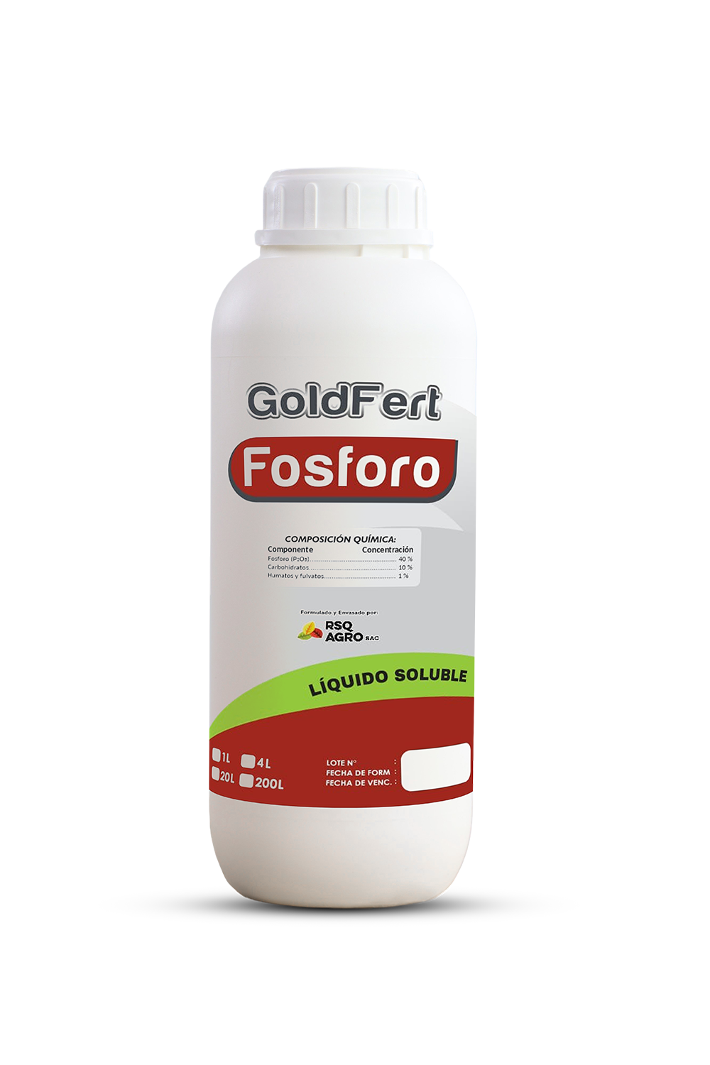 GoldFert Fósforo es un fertilizante foliar de alta concentración diseñado para potenciar los procesos de formación radicular, floración, fructificación y desarrollo energético de los cultivos. Su fórmula soluble garantiza una absorción rápida y eficaz, asegurando resultados visibles en poco tiempo.