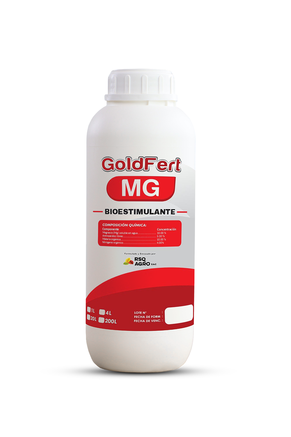 GoldFert MG es un fertilizante bioestimulante formulado con magnesio altamente asimilable y aminoácidos naturales. Actúa directamente en la producción de clorofila, mejorando la energía de la planta y aumentando su capacidad de crecimiento.